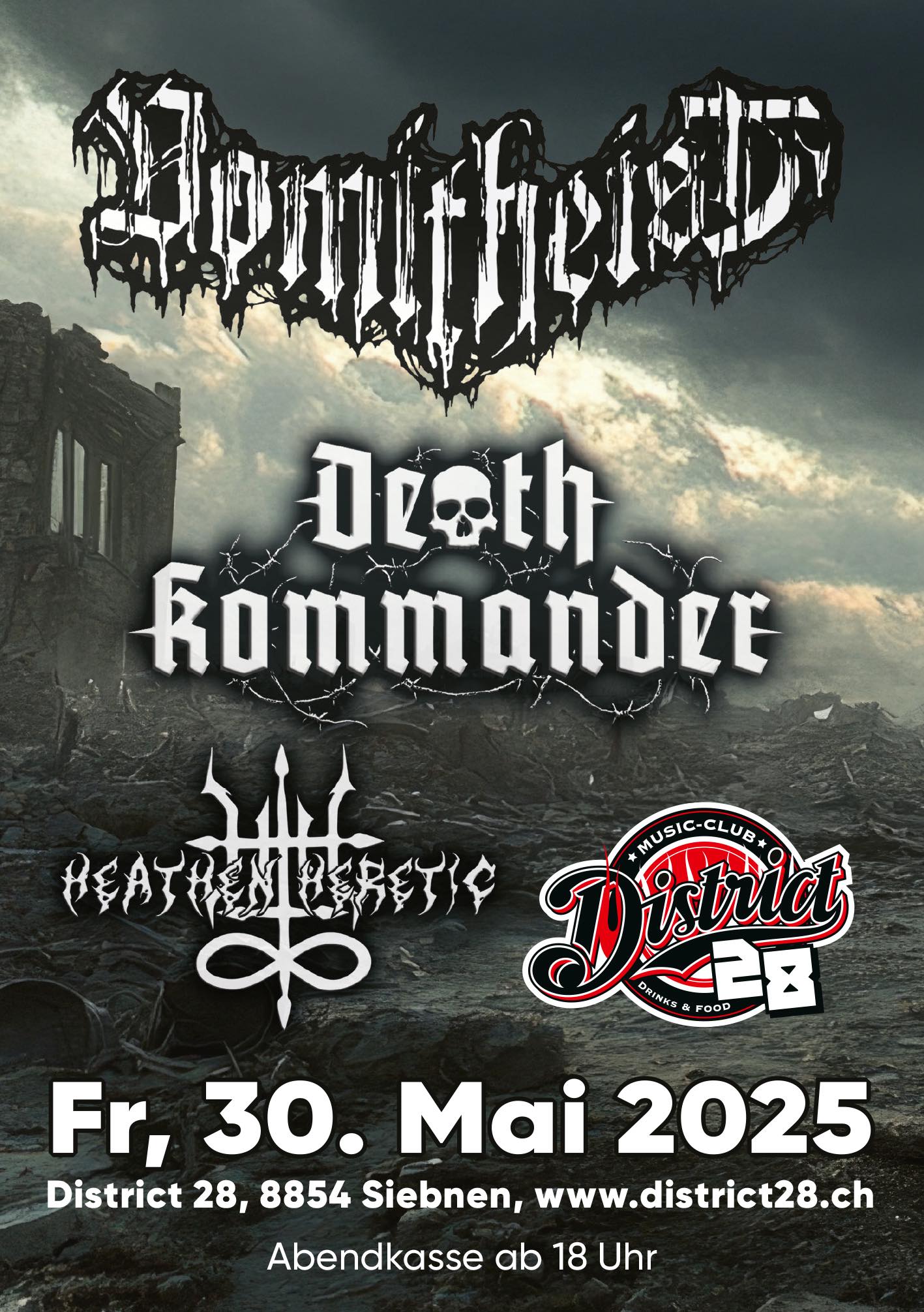 The band’s grim mission: to channel the chaos, horror, and fury of total war through a raw, unrelenting sonic campaign. Expect grinding riffs, guttural vocals, battering drums, and an atmosphere thick with dread and defiance. From the opening salvo to the final blast, this is music to march into fire with.